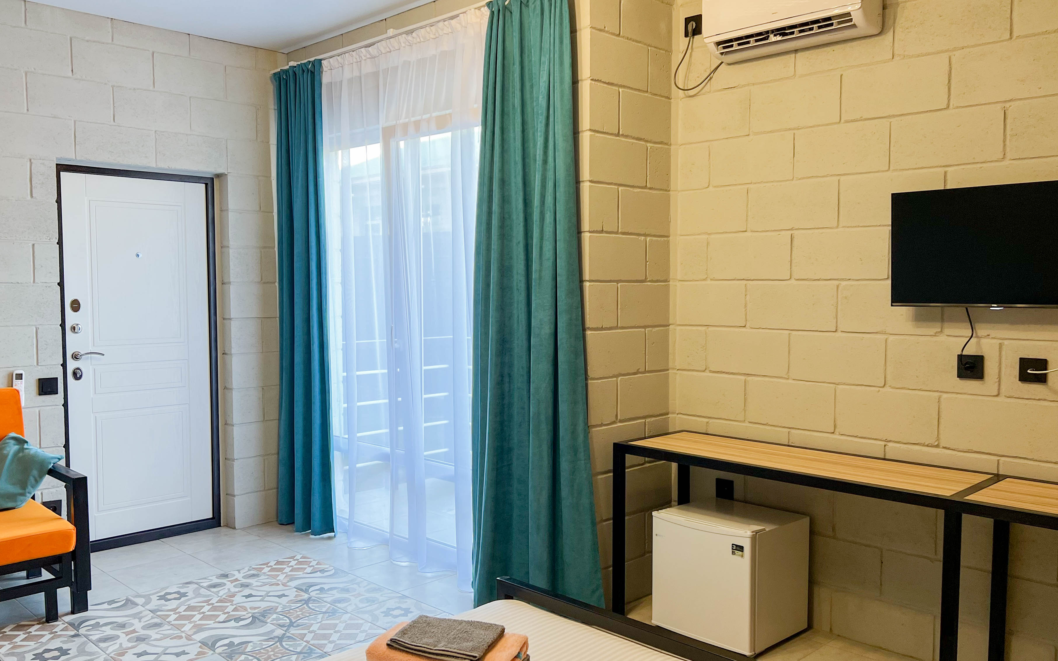 Также в номере имеются 2 телевизора (в каждой из зон свой), кондиционер